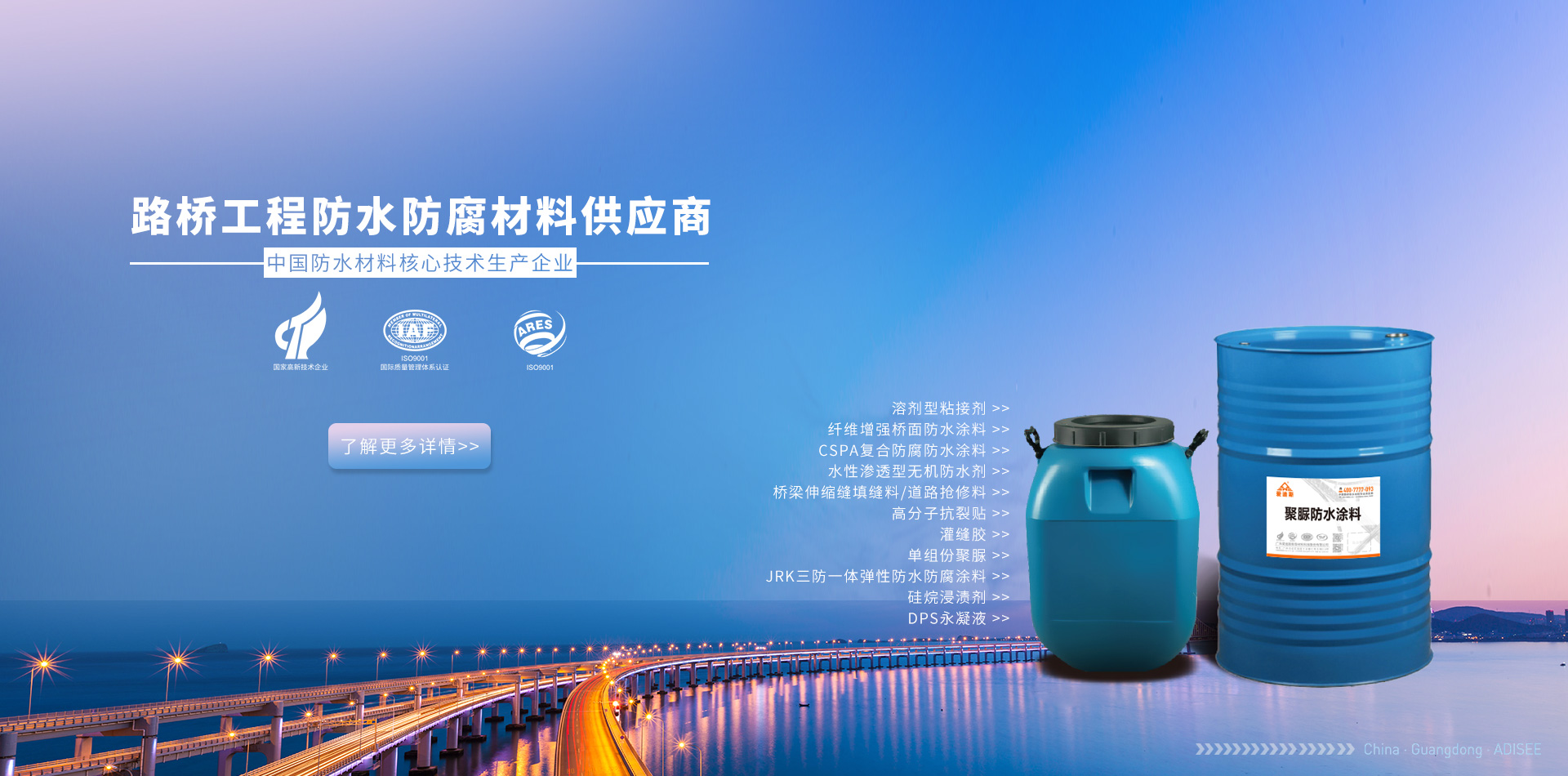 修繕補漏防水系列 廣東愛迪斯新型材料科技有限公司廣州分公司 隔音隔熱系列 路橋及防腐防水系列 家裝工程防水系列 修繕補漏防水系列專業(yè)承接路橋防水防腐工程施工及防水材料銷售,路橋防水工程遍布全國各地,多年的技術(shù)經(jīng)驗積累了一整套橋面防水病害處理方案,專業(yè)的路橋防水技術(shù),配套路橋防水施工設(shè)備,圓滿完成路橋防水施工任務,用戶滿意度評價高,處橋梁防水行業(yè)技術(shù)領(lǐng)先水...